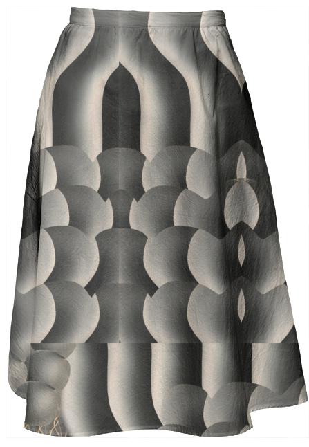 Knee length a-line skirt with a tailored waistband and invisible side seam zipper.