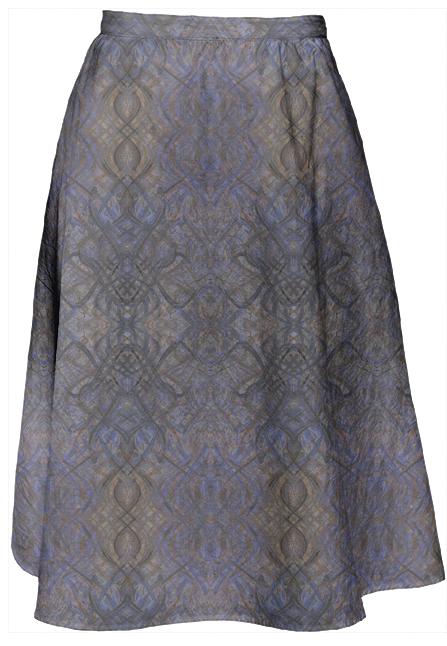 Knee length a-line skirt with a tailored waistband and invisible side seam zipper.