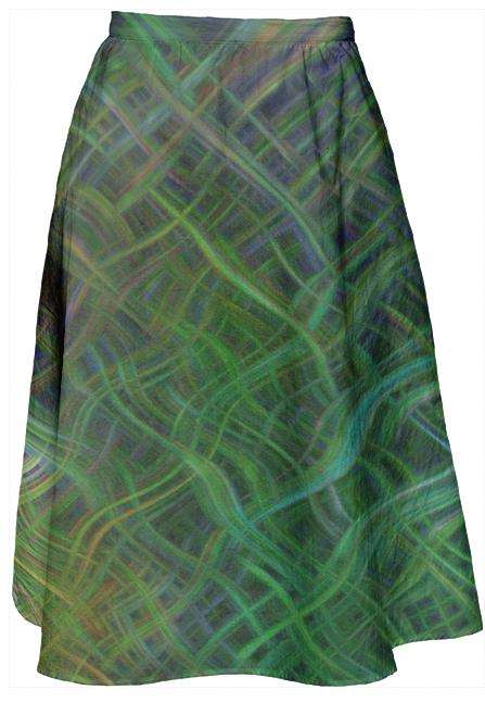 Knee length a-line skirt with a tailored waistband and invisible side seam zipper.