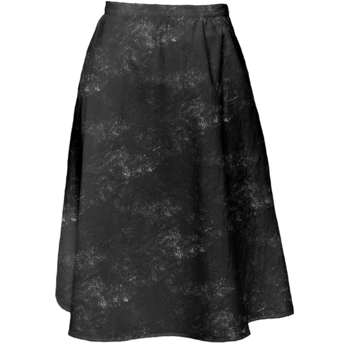 Knee length a-line skirt with a tailored waistband and invisible side seam zipper.
