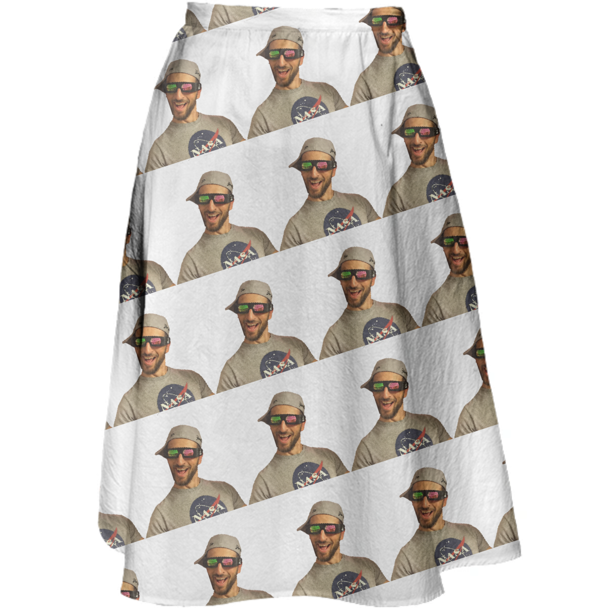Knee length a-line skirt with a tailored waistband and invisible side seam zipper.