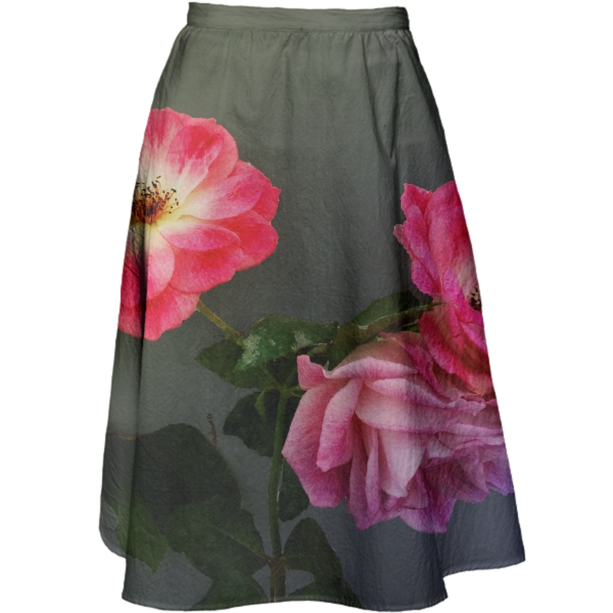 Knee length a-line skirt with a tailored waistband and invisible side seam zipper.