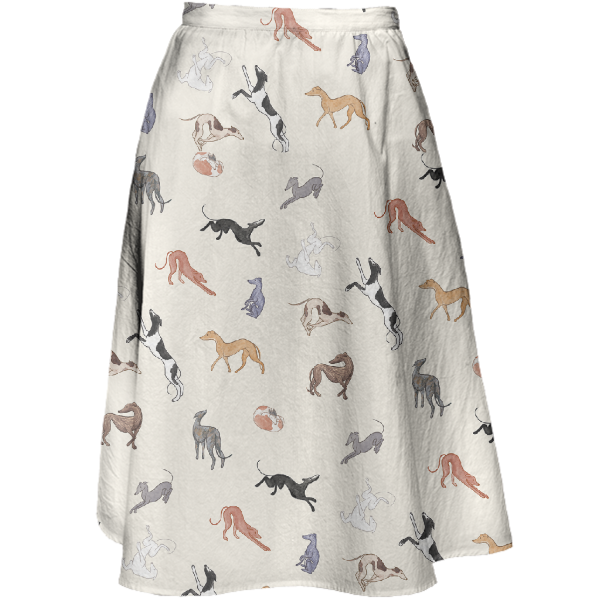 Knee length a-line skirt with a tailored waistband and invisible side seam zipper.