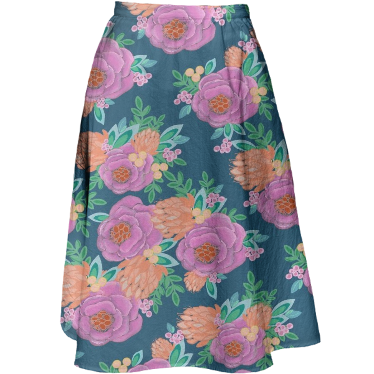 Knee length a-line skirt with a tailored waistband and invisible side seam zipper.