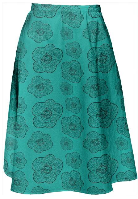 Knee length a-line skirt with a tailored waistband and invisible side seam zipper.