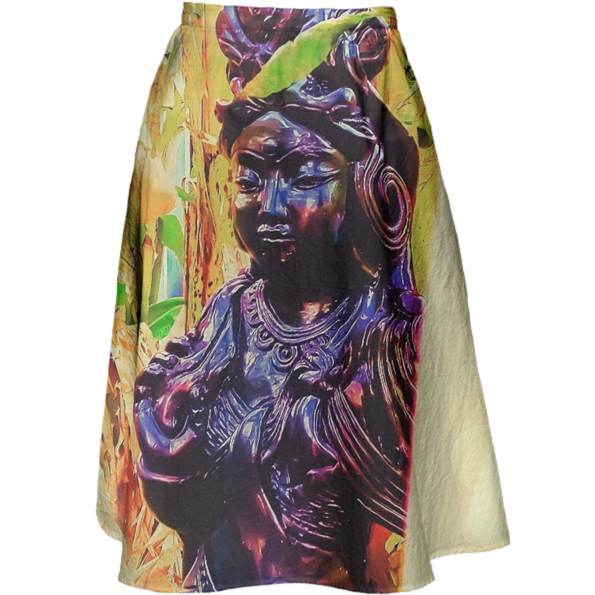 Knee length a-line skirt with a tailored waistband and invisible side seam zipper.