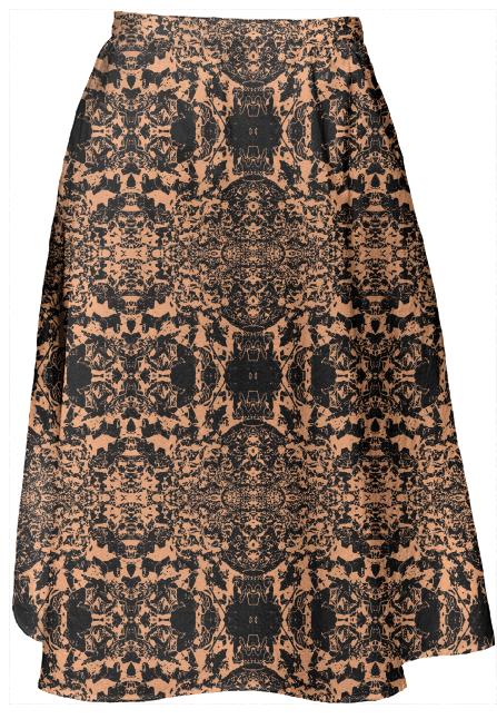 Knee length a-line skirt with a tailored waistband and invisible side seam zipper.