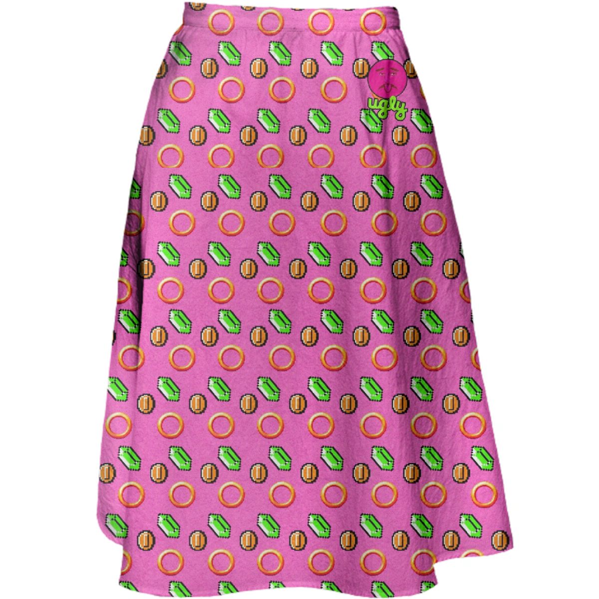 Knee length a-line skirt with a tailored waistband and invisible side seam zipper.