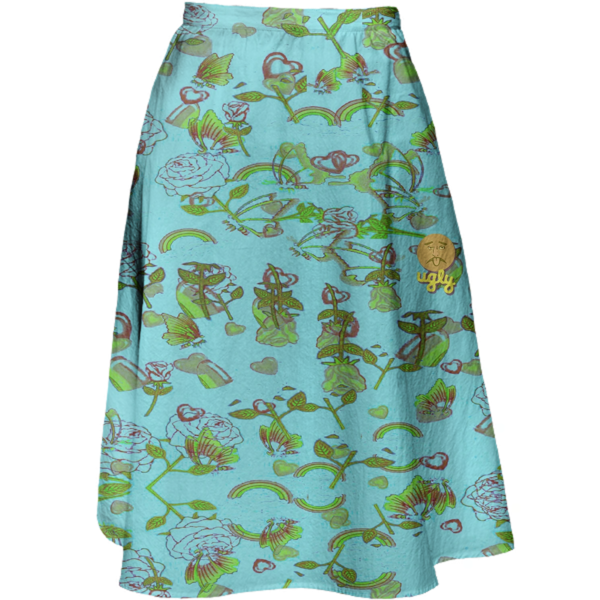 Knee length a-line skirt with a tailored waistband and invisible side seam zipper.