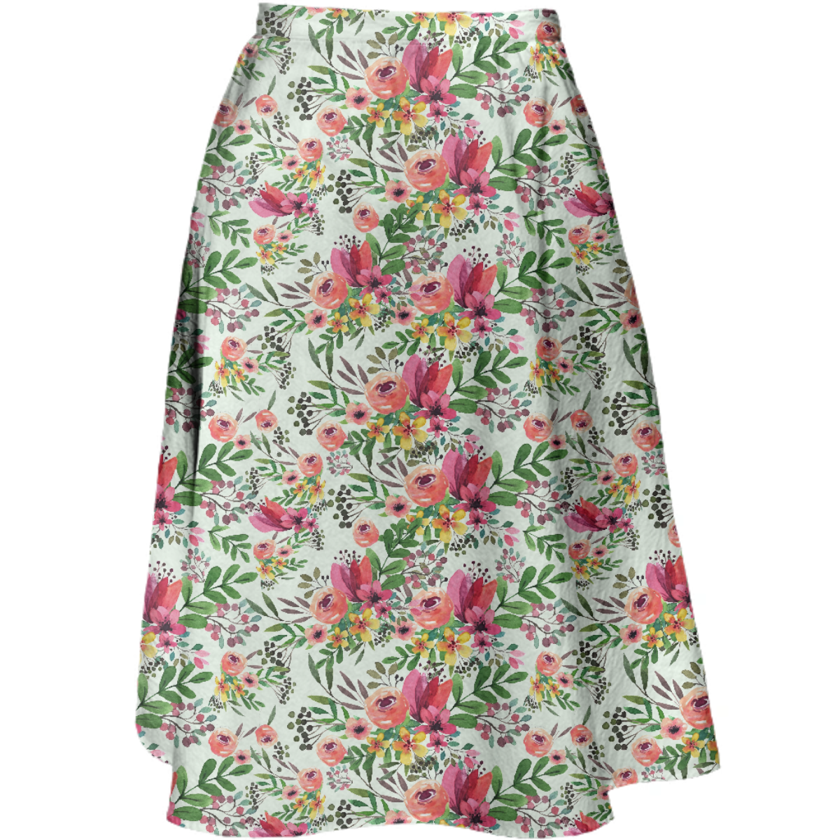 Knee length a-line skirt with a tailored waistband and invisible side seam zipper.