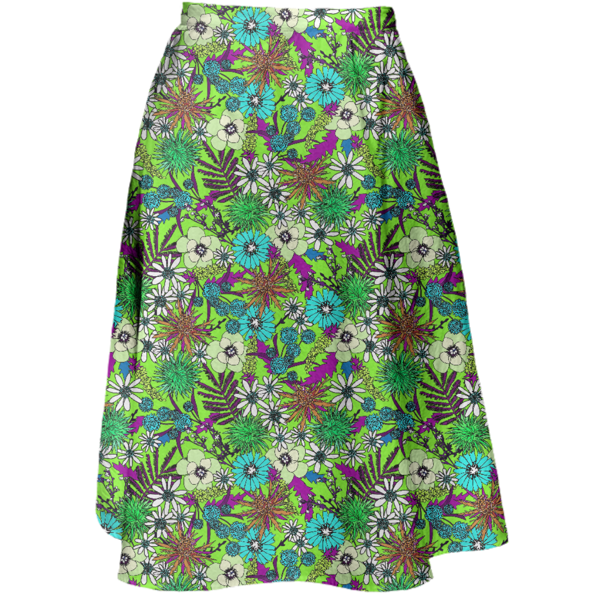 Knee length a-line skirt with a tailored waistband and invisible side seam zipper.