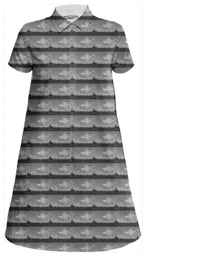 Sporty a-line collared mini dress with short sleeves a 5-button front placket and side seam pockets.