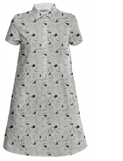 Sporty a-line collared mini dress with short sleeves a 5-button front placket and side seam pockets.