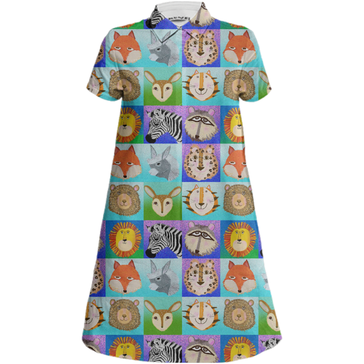 Sporty a-line collared mini dress with short sleeves a 5-button front placket and side seam pockets.