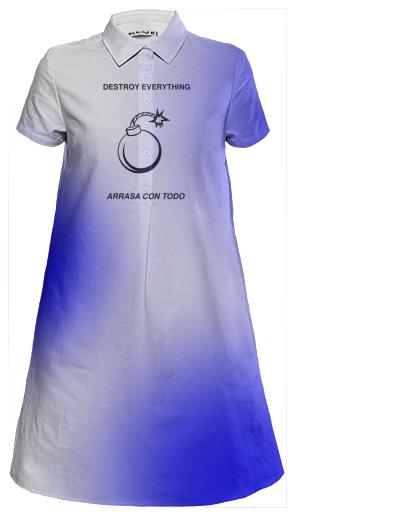 Sporty a-line collared mini dress with short sleeves a 5-button front placket and side seam pockets.