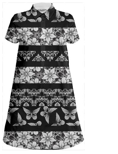 Sporty a-line collared mini dress with short sleeves a 5-button front placket and side seam pockets.