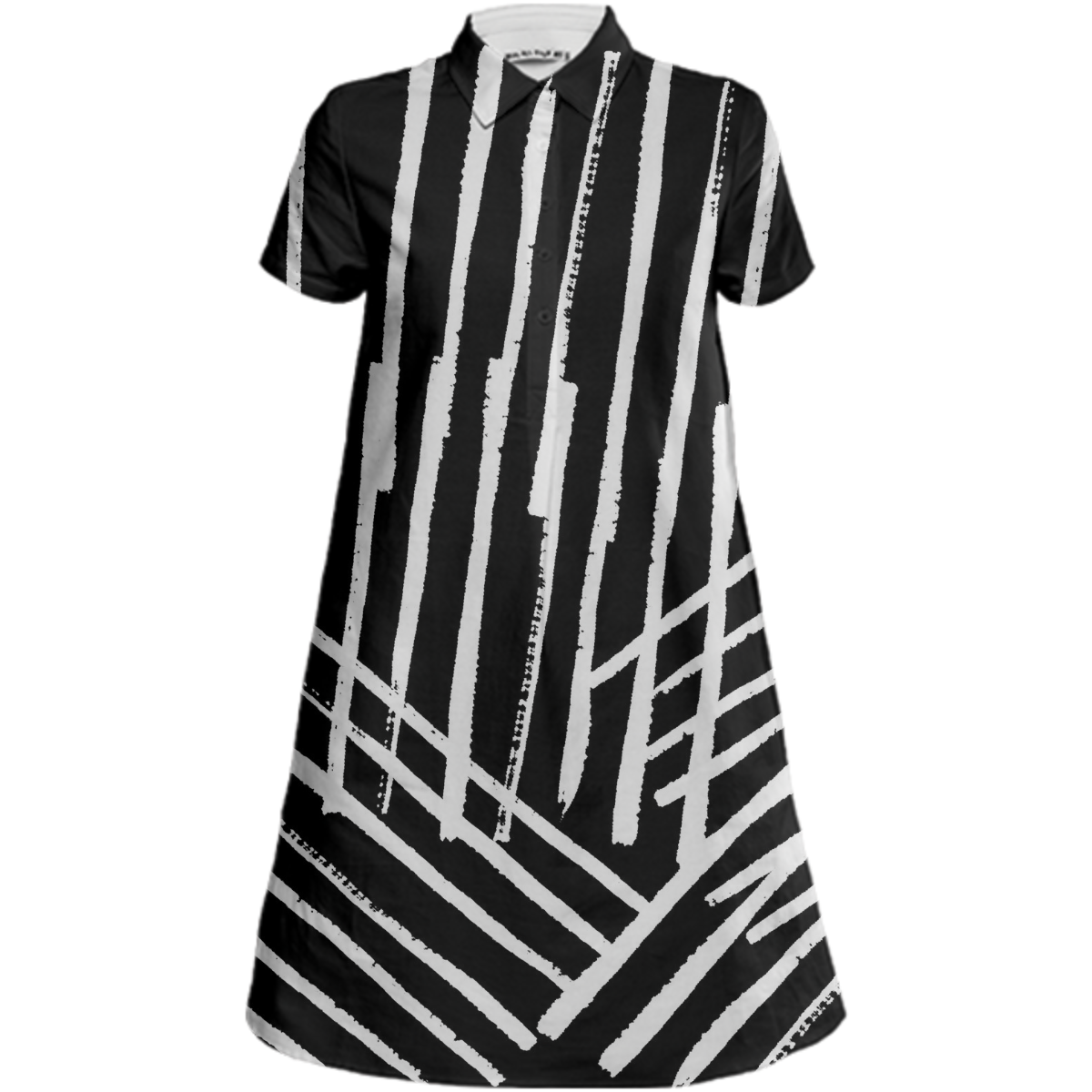 Sporty a-line collared mini dress with short sleeves a 5-button front placket and side seam pockets.