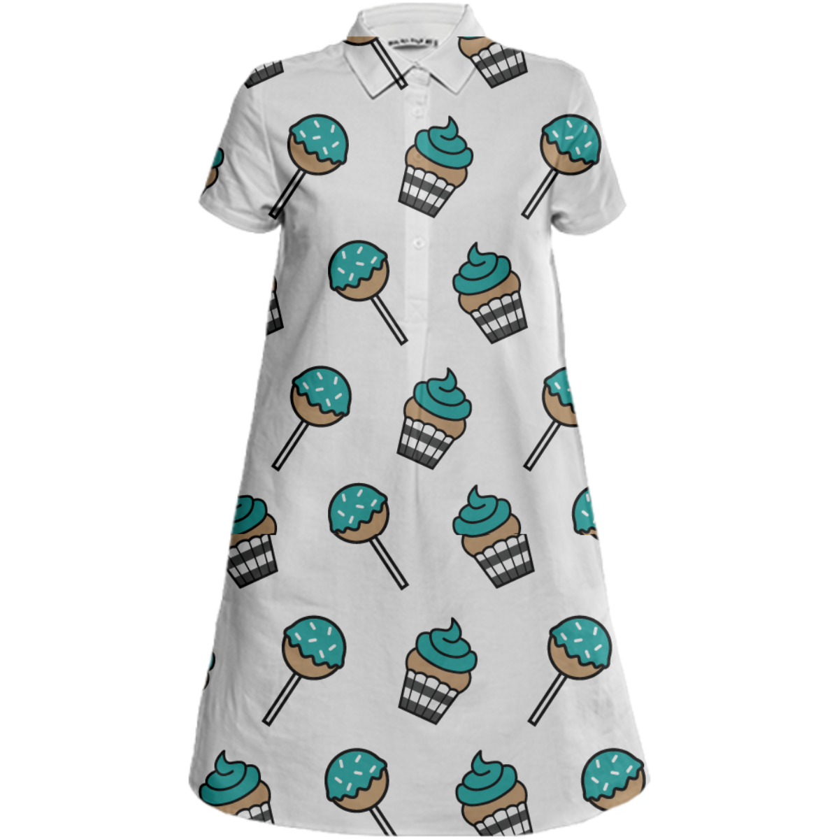 Sporty a-line collared mini dress with short sleeves a 5-button front placket and side seam pockets.