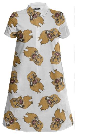 Sporty a-line collared mini dress with short sleeves a 5-button front placket and side seam pockets.