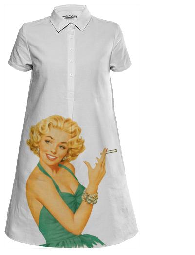 Sporty a-line collared mini dress with short sleeves a 5-button front placket and side seam pockets.