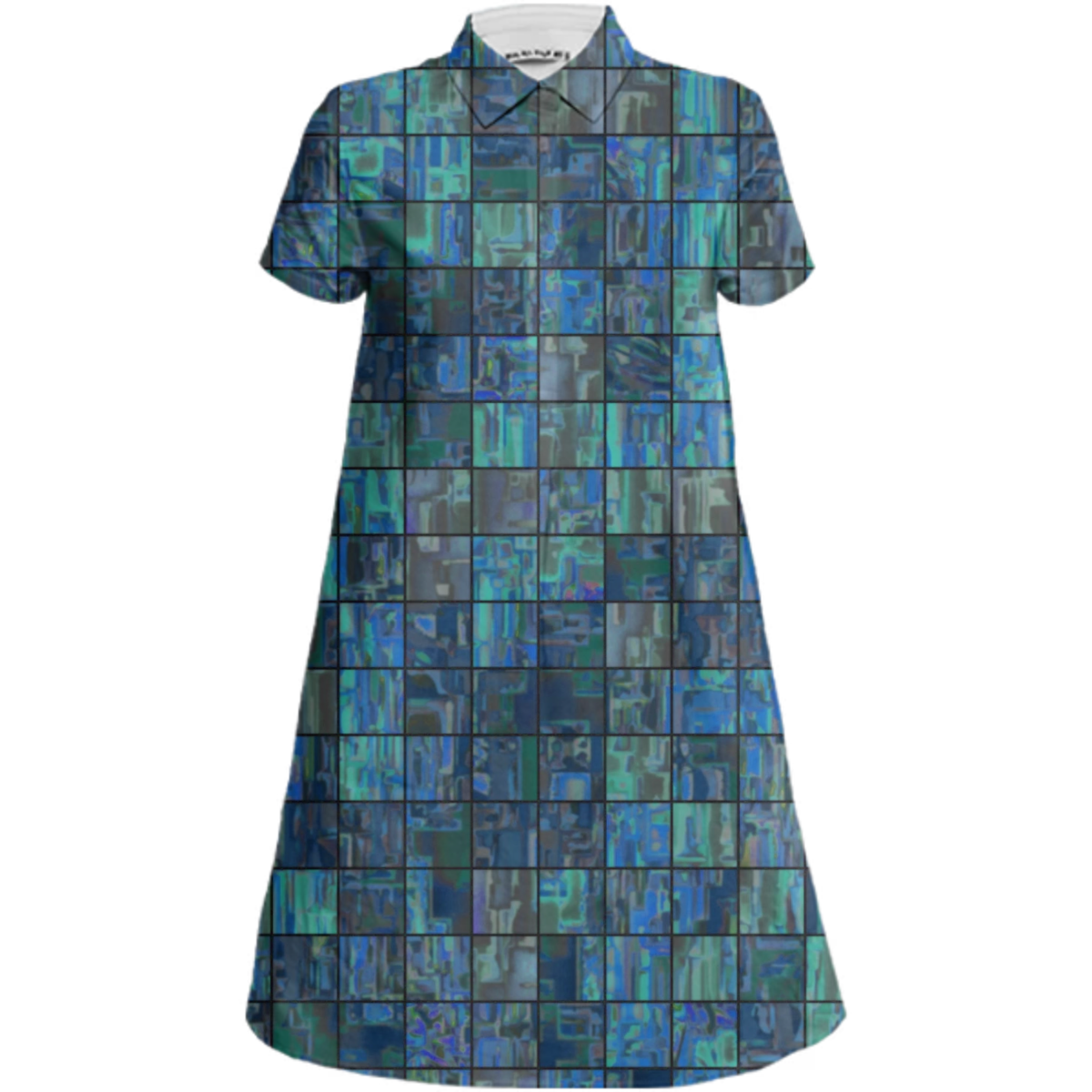 Sporty a-line collared mini dress with short sleeves a 5-button front placket and side seam pockets.