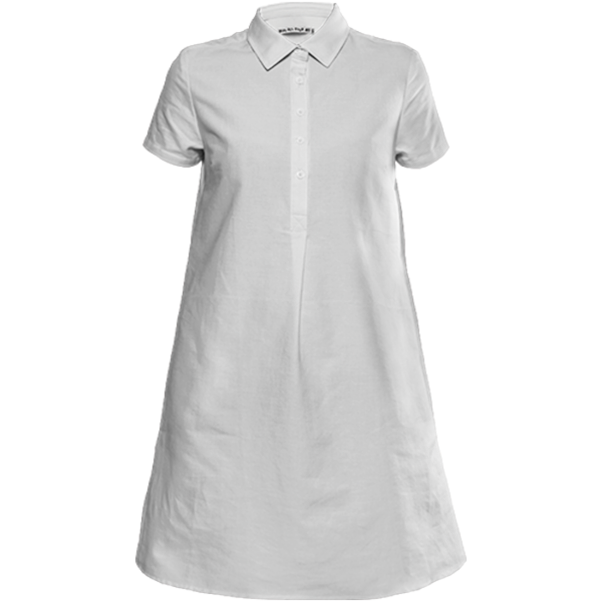 Sporty a-line collared mini dress with short sleeves a 5-button front placket and side seam pockets.