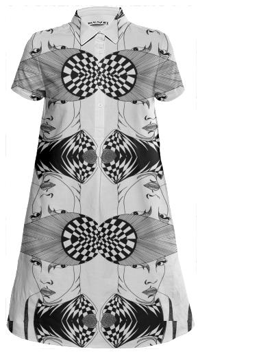 Sporty a-line collared mini dress with short sleeves a 5-button front placket and side seam pockets.