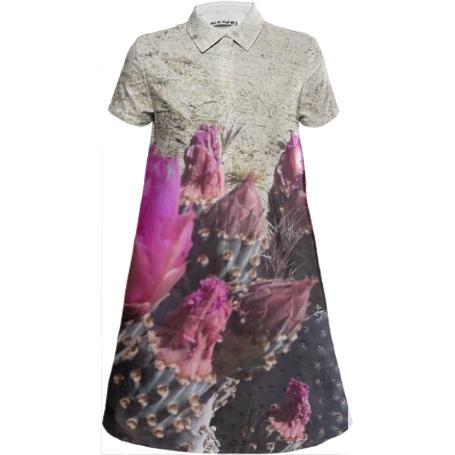 Sporty a-line collared mini dress with short sleeves a 5-button front placket and side seam pockets.