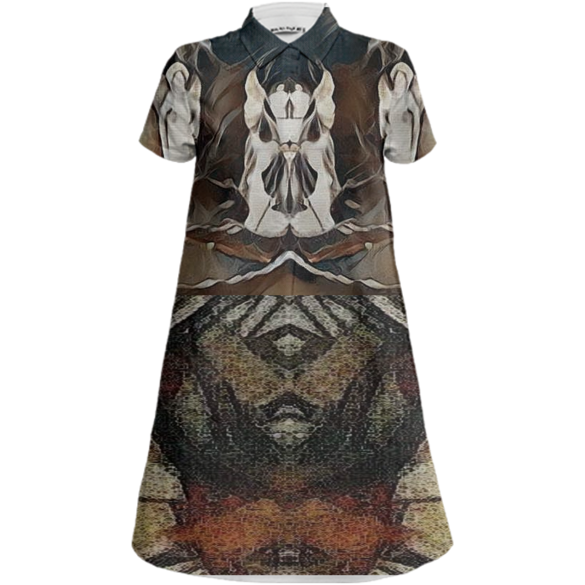 Sporty a-line collared mini dress with short sleeves a 5-button front placket and side seam pockets.