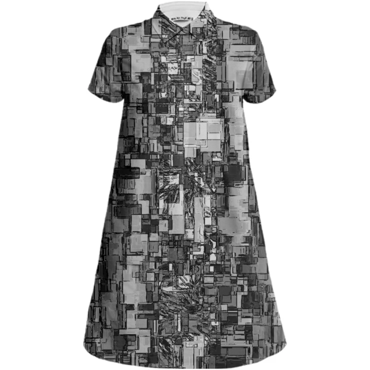 Sporty a-line collared mini dress with short sleeves a 5-button front placket and side seam pockets.