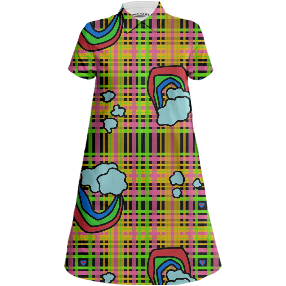 Sporty a-line collared mini dress with short sleeves a 5-button front placket and side seam pockets.