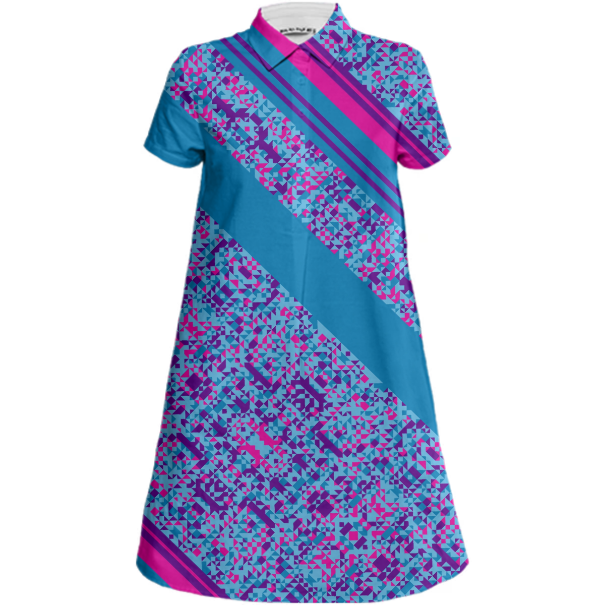 Sporty a-line collared mini dress with short sleeves a 5-button front placket and side seam pockets.