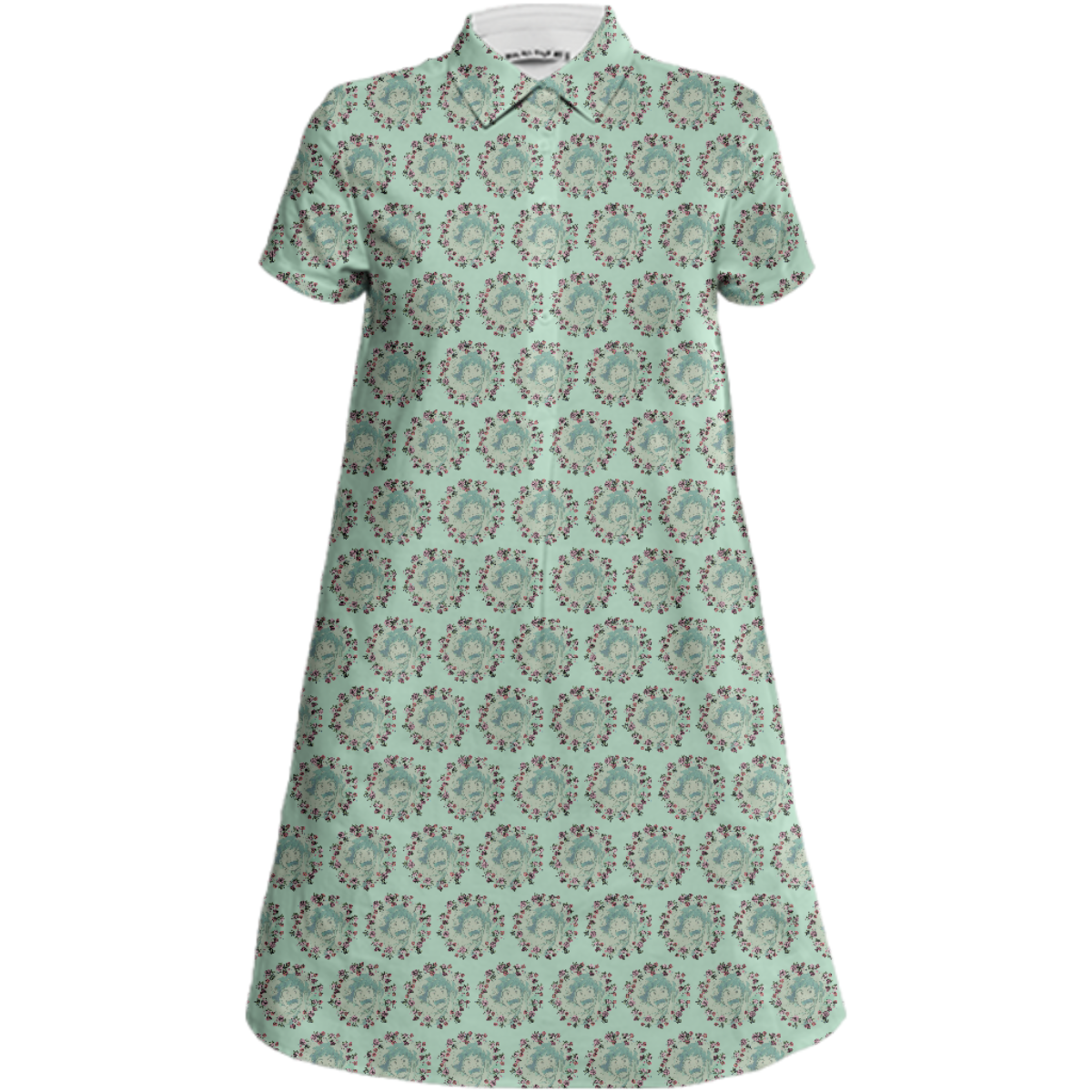 Sporty a-line collared mini dress with short sleeves a 5-button front placket and side seam pockets.