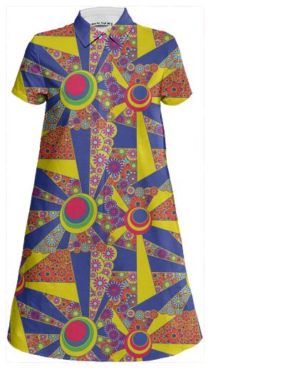 Sporty a-line collared mini dress with short sleeves a 5-button front placket and side seam pockets.