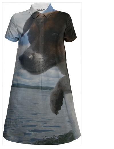 Sporty a-line collared mini dress with short sleeves a 5-button front placket and side seam pockets.