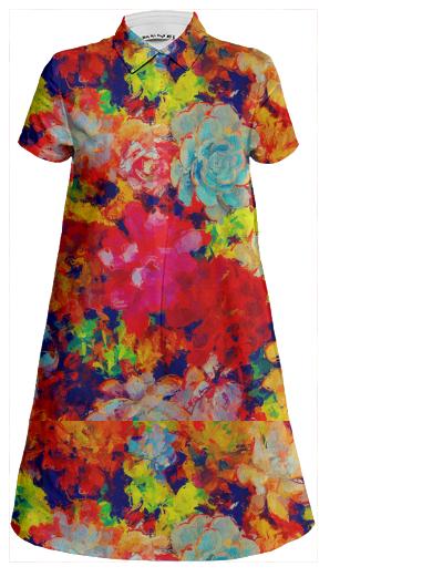 Sporty a-line collared mini dress with short sleeves a 5-button front placket and side seam pockets.