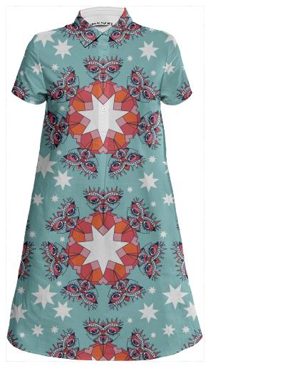 Sporty a-line collared mini dress with short sleeves a 5-button front placket and side seam pockets.