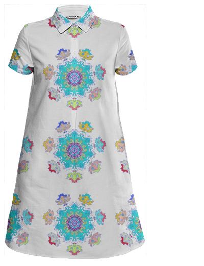 Sporty a-line collared mini dress with short sleeves a 5-button front placket and side seam pockets.