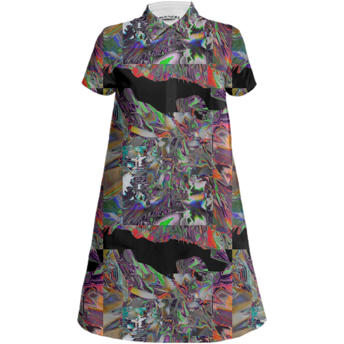Sporty a-line collared mini dress with short sleeves a 5-button front placket and side seam pockets.