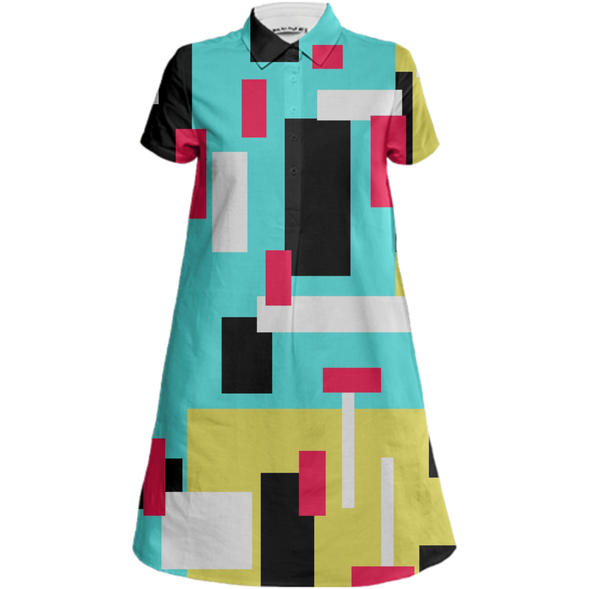 Sporty a-line collared mini dress with short sleeves a 5-button front placket and side seam pockets.