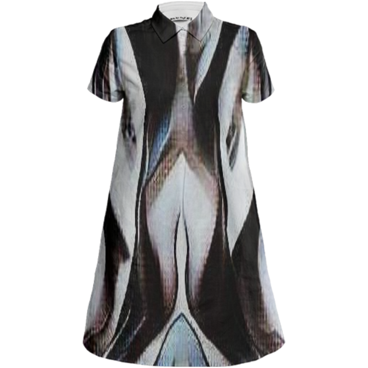 Sporty a-line collared mini dress with short sleeves a 5-button front placket and side seam pockets.