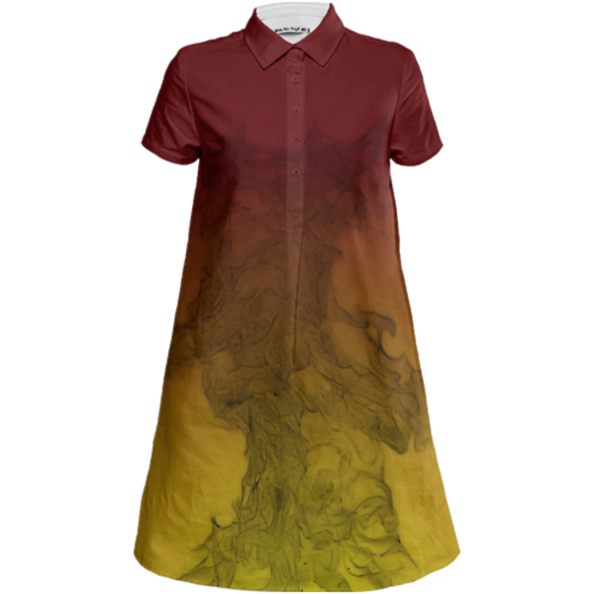 Sporty a-line collared mini dress with short sleeves a 5-button front placket and side seam pockets.
