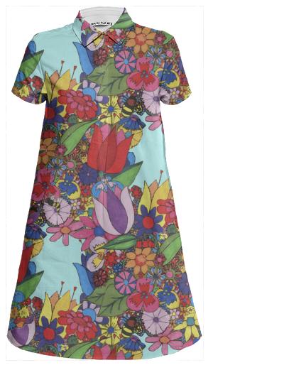 Sporty a-line collared mini dress with short sleeves a 5-button front placket and side seam pockets.