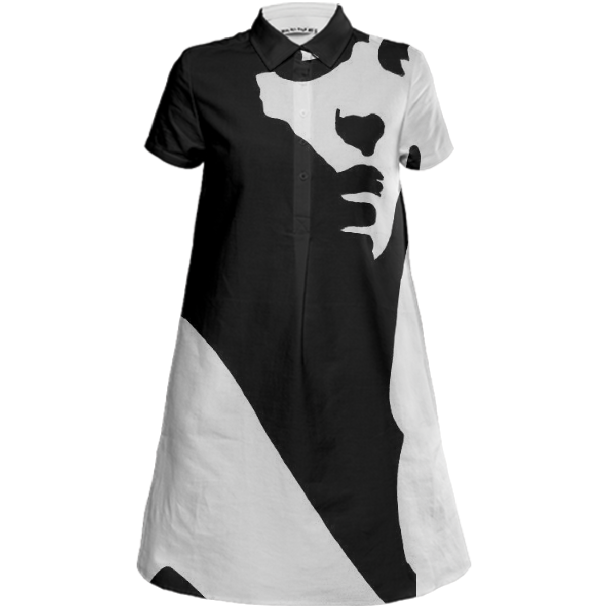 Sporty a-line collared mini dress with short sleeves a 5-button front placket and side seam pockets.