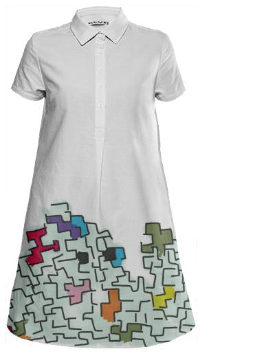 Sporty a-line collared mini dress with short sleeves a 5-button front placket and side seam pockets.