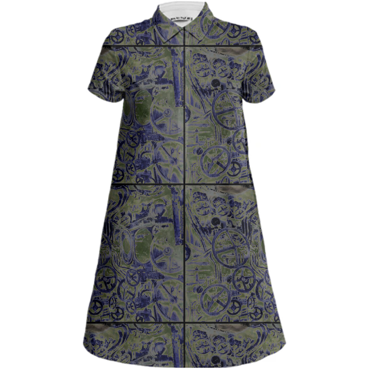 Sporty a-line collared mini dress with short sleeves a 5-button front placket and side seam pockets.
