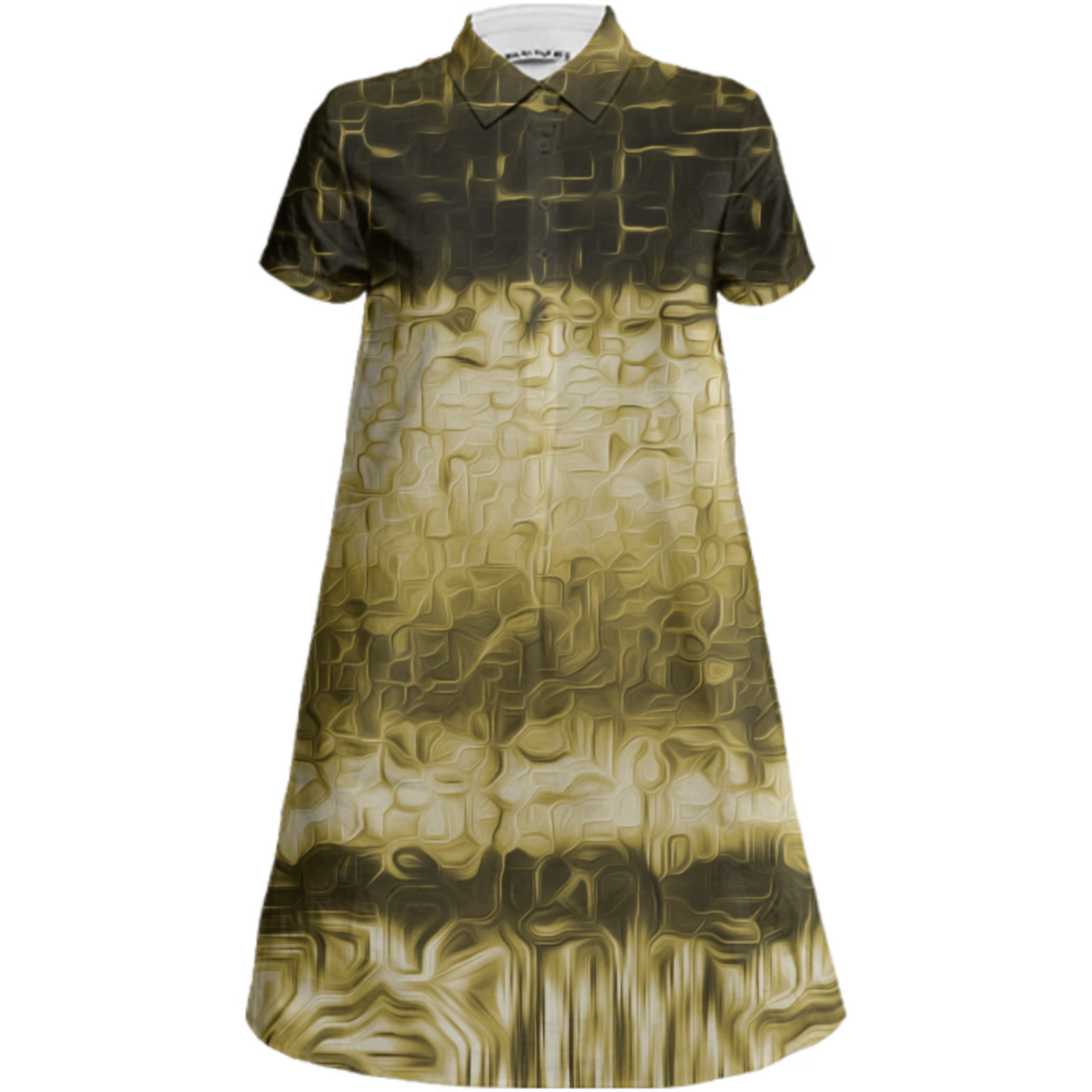 Sporty a-line collared mini dress with short sleeves a 5-button front placket and side seam pockets.