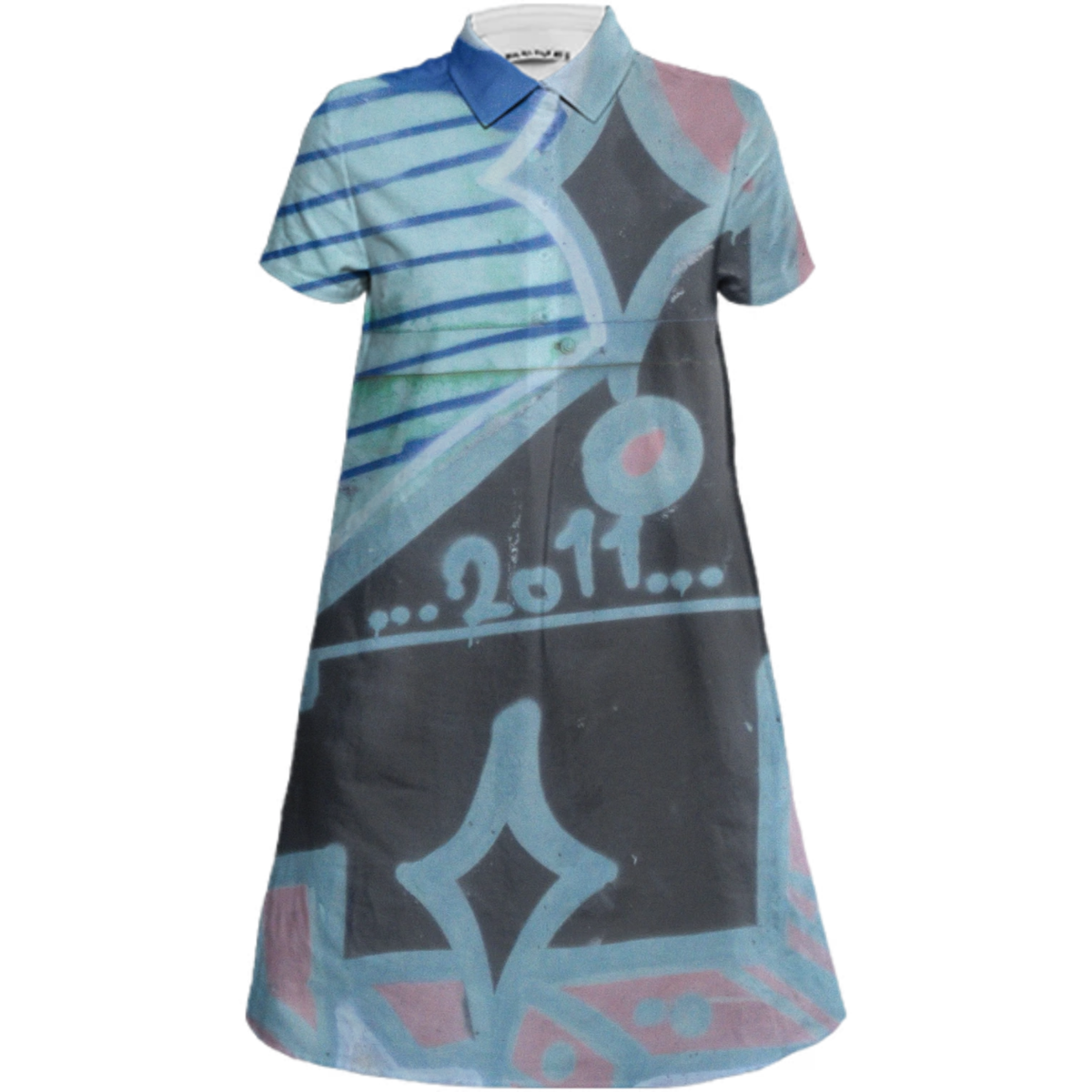 Sporty a-line collared mini dress with short sleeves a 5-button front placket and side seam pockets.