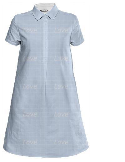 Sporty a-line collared mini dress with short sleeves a 5-button front placket and side seam pockets.