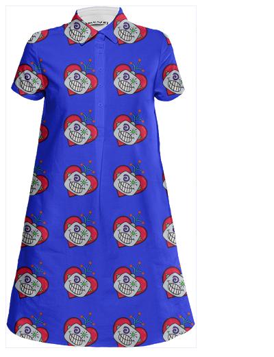 Sporty a-line collared mini dress with short sleeves a 5-button front placket and side seam pockets.